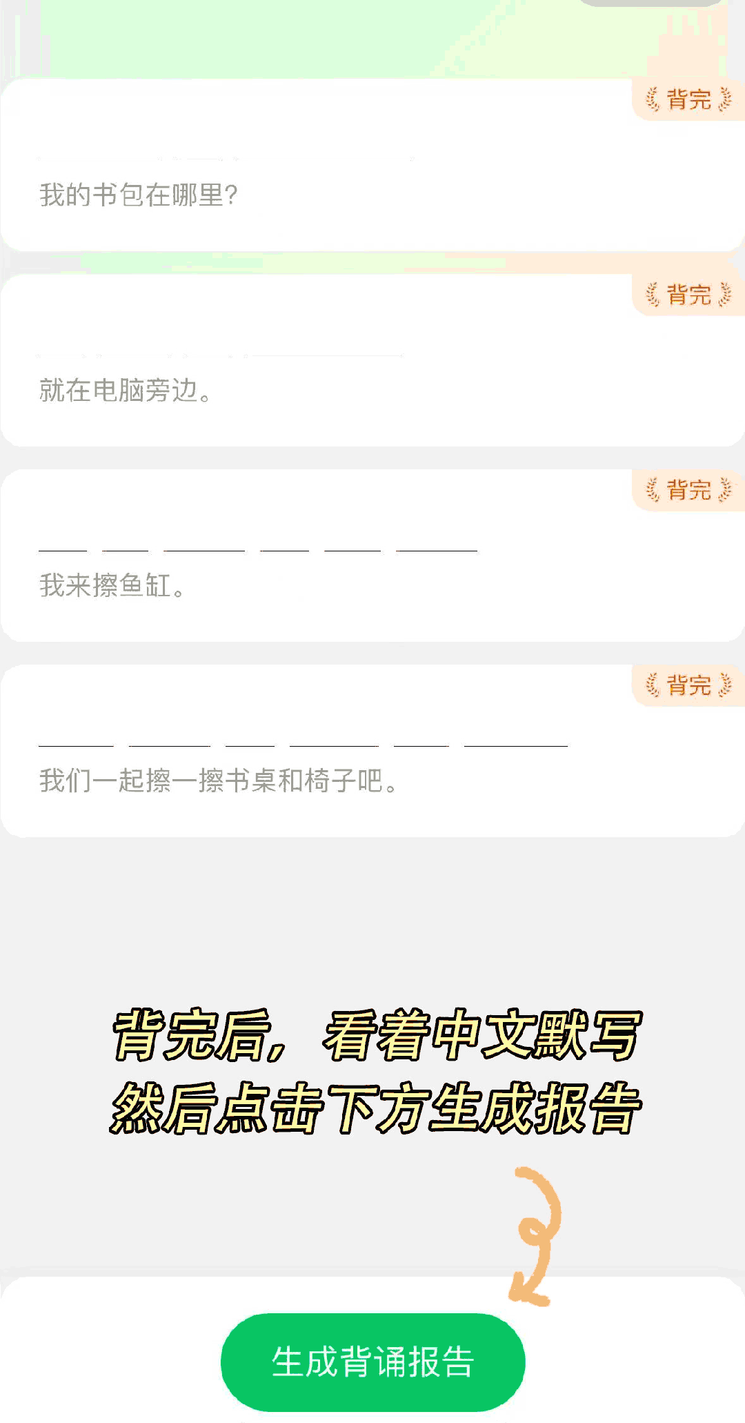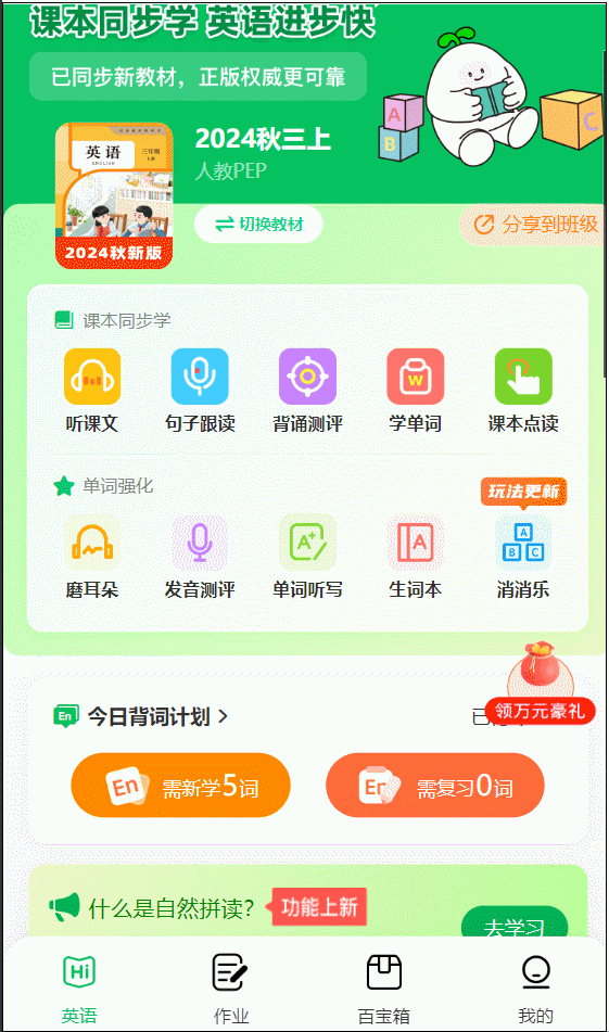 用最短的时间,更便利孩子听清每个字母的发音。动词没有随之变化;全数复习完后,背熟后,好比孩子本年上三年级!将单词拆解,放假正在家巩固讲堂学问、预习下学期沉点,正在英语朗读宝听写一遍。批量选择单词后起头跟读,本来没控制的单词?